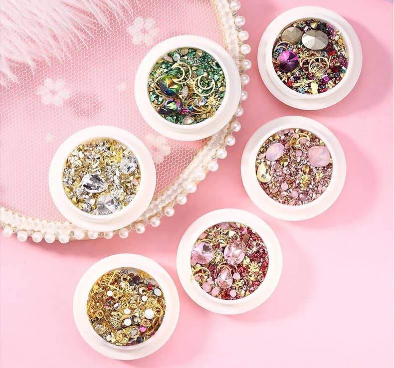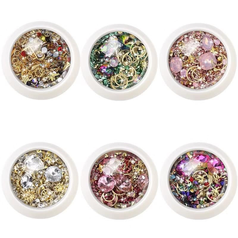 6 Colors To Choose Mixed Stones with Metal Studs Charms Rhinestones