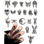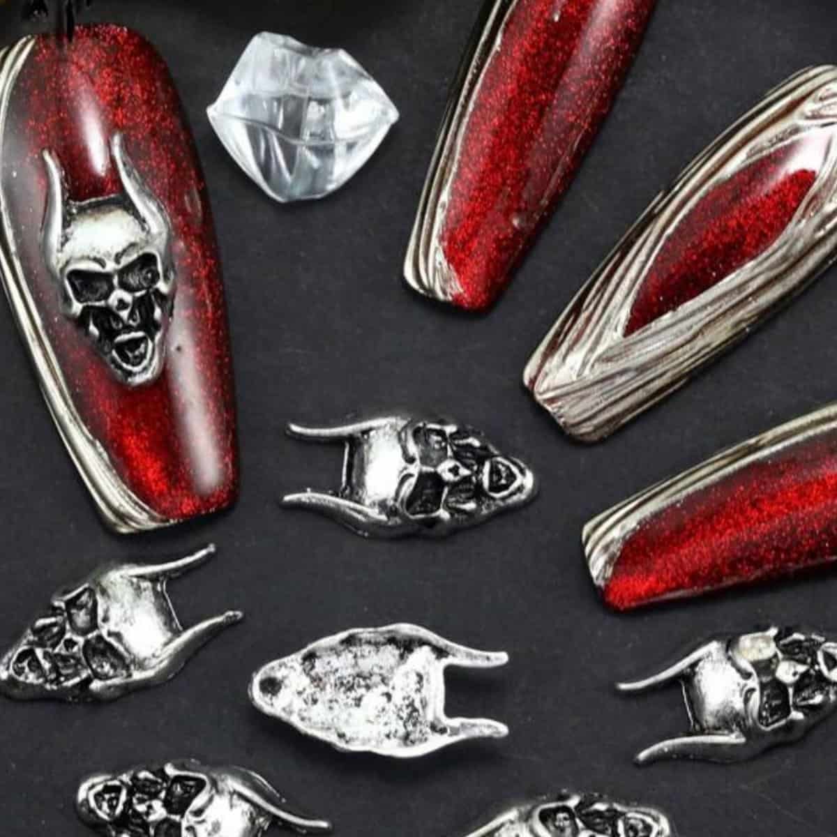 10pcs Retro Punk Halloween Metal Alloy Silver Gray Dark Nail Art Charms