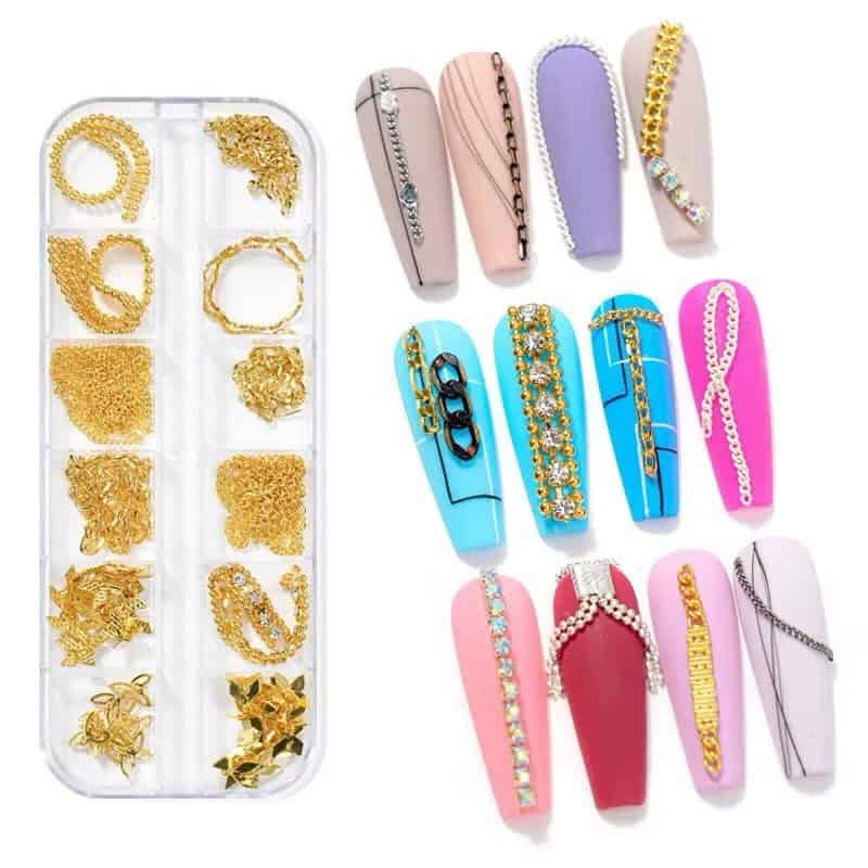 nail decoration chain,metal nail chain,nail jewelry chain,nail accessories chain