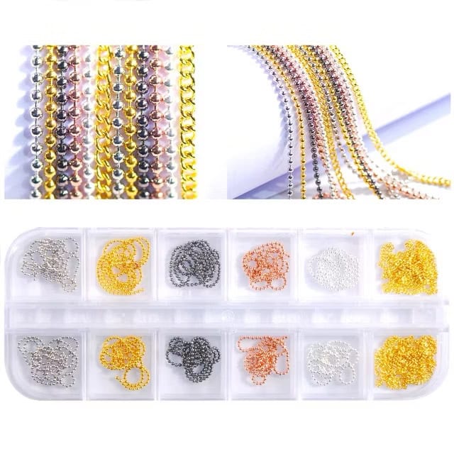 Gold Silver Shiny Diamonds Beads Rhinestone Metal Nail Art Chain