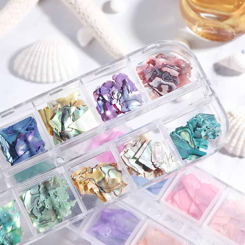 12 Grid Mica Pearlescent Abalone Shell Flakes
