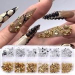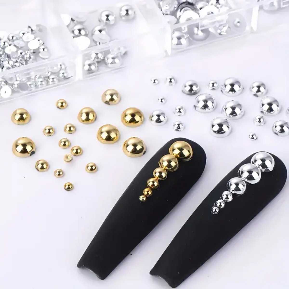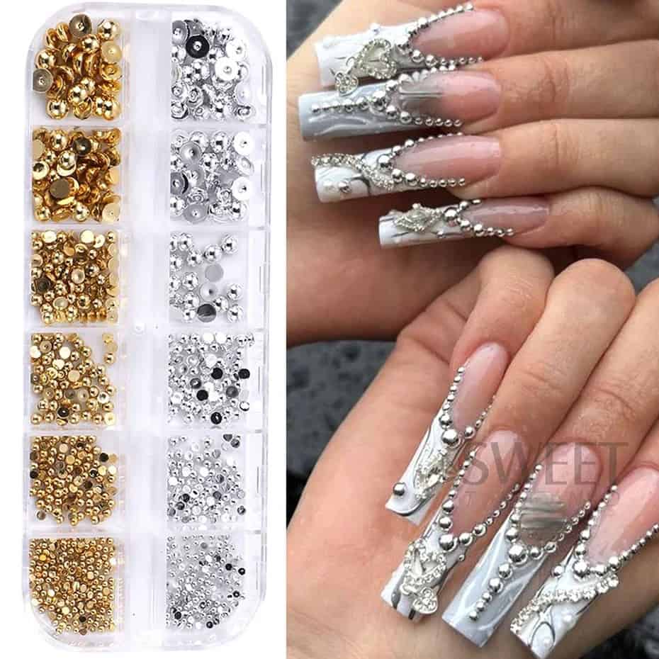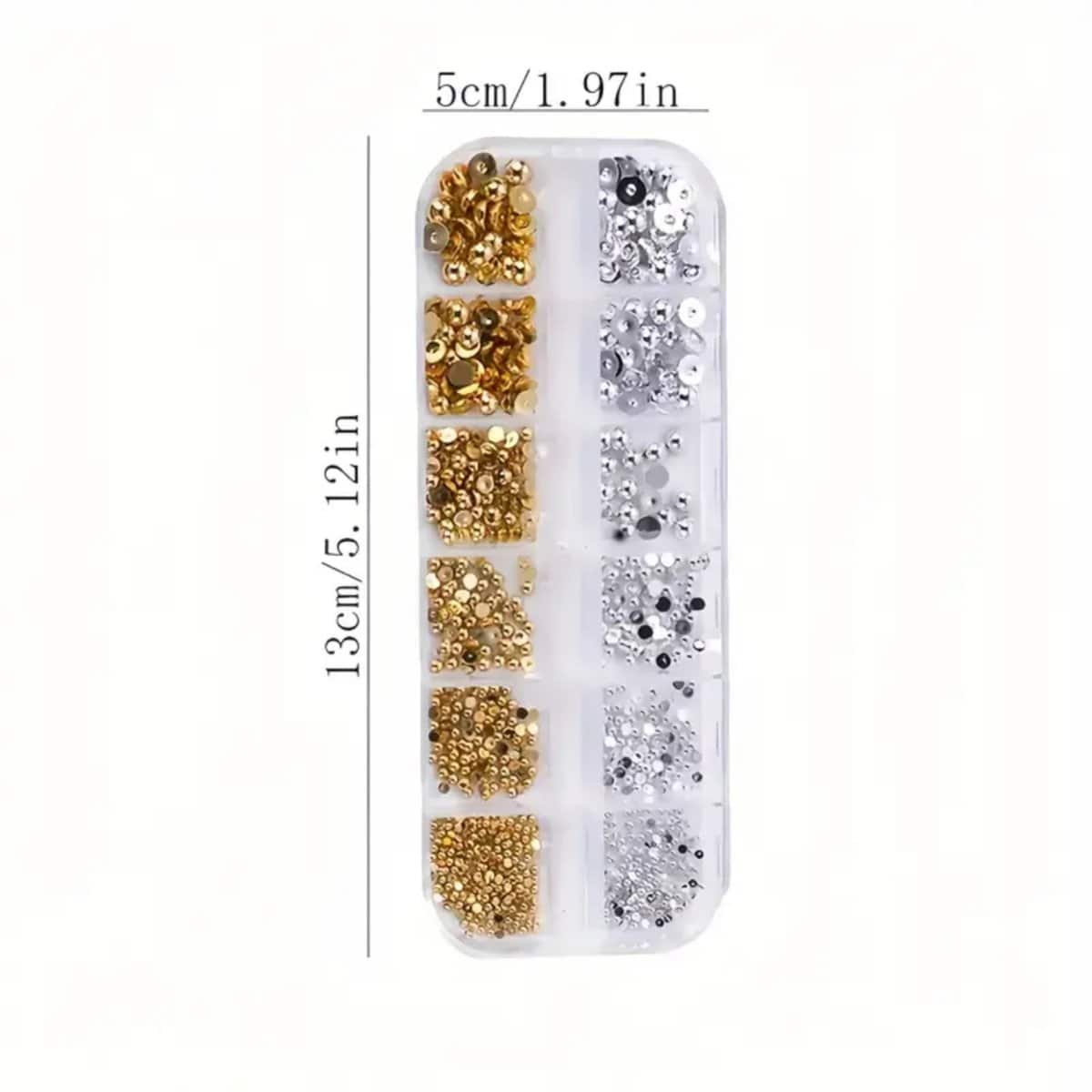 12 Grids Gold Silver Pearl Beads Nail Charms