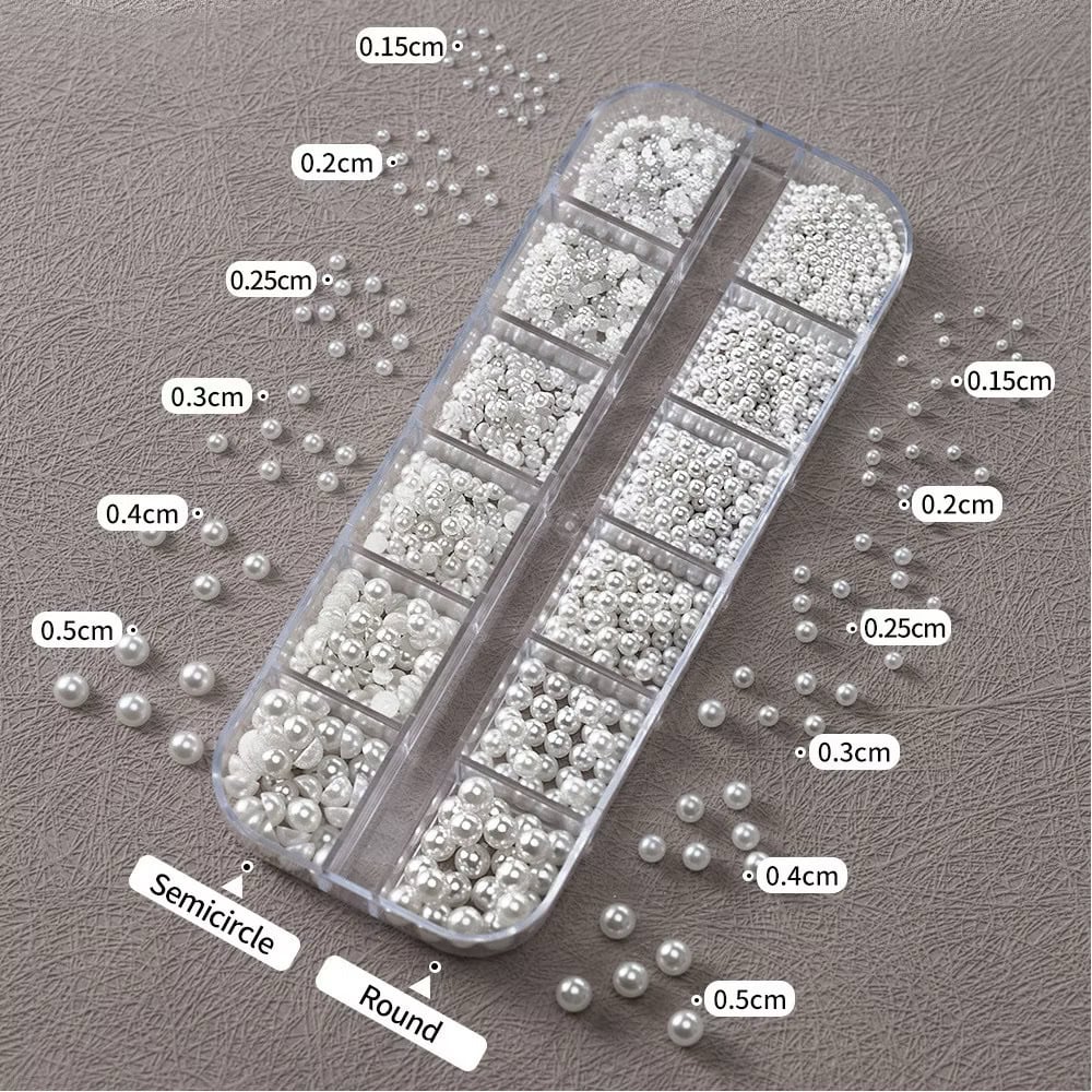 12 Grid Half or Full Pearl Beads Nail Art Decor
