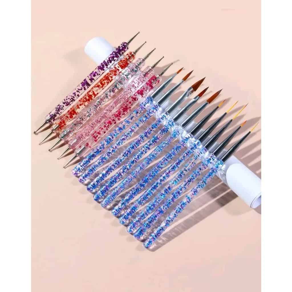 The double-end nail dotting pens have various tip diameters, which can be used to pick up sequins and embellish. The nail brush is very suitable for precise carving and delicate acrylic nail art