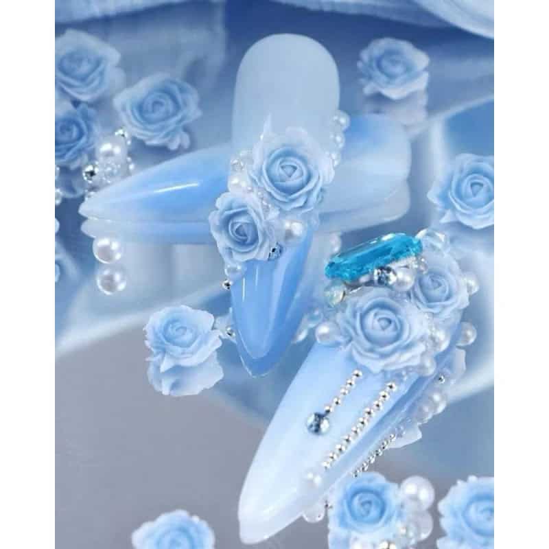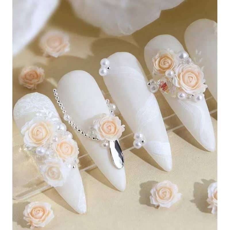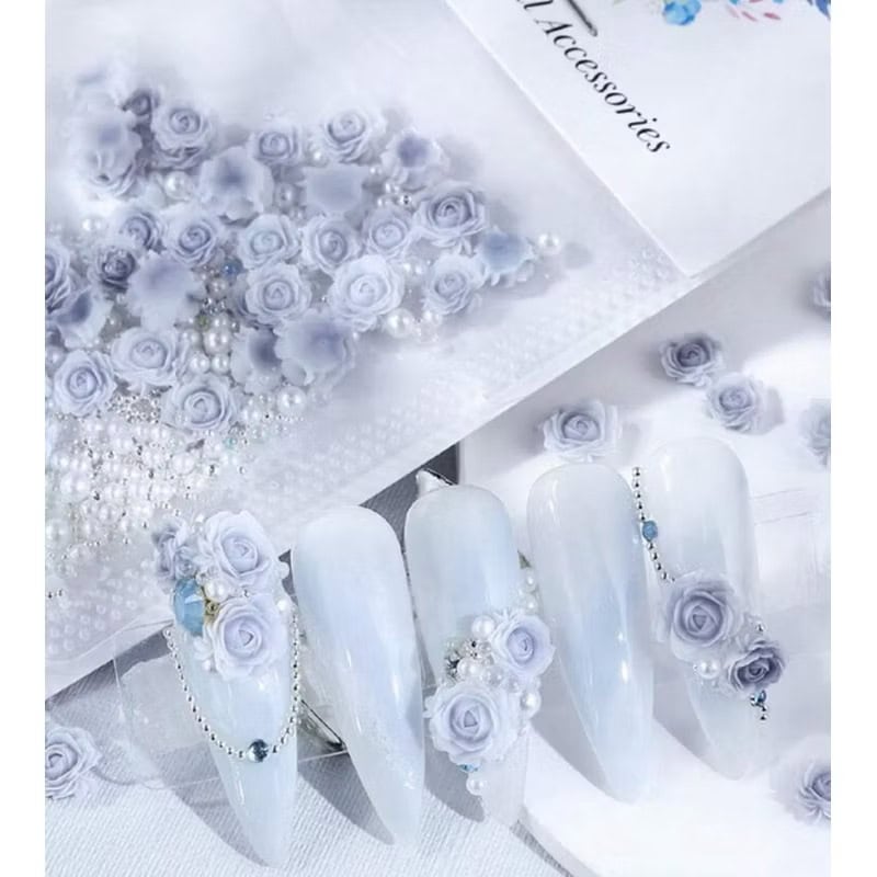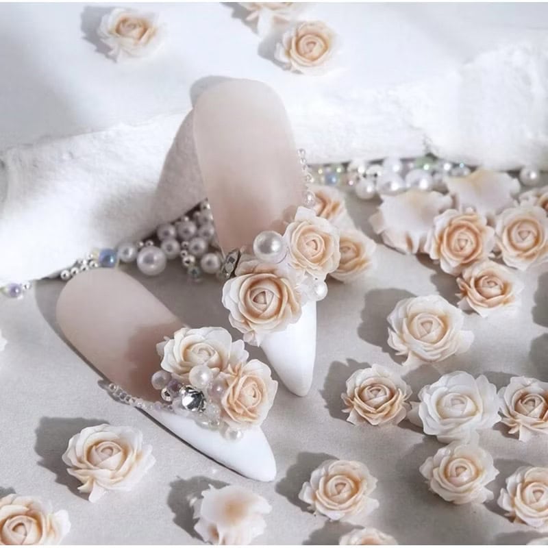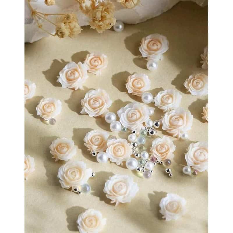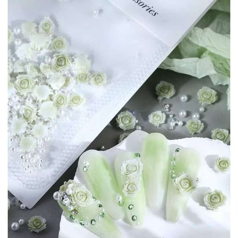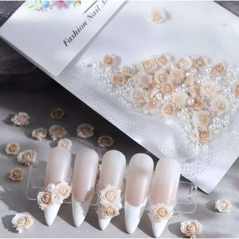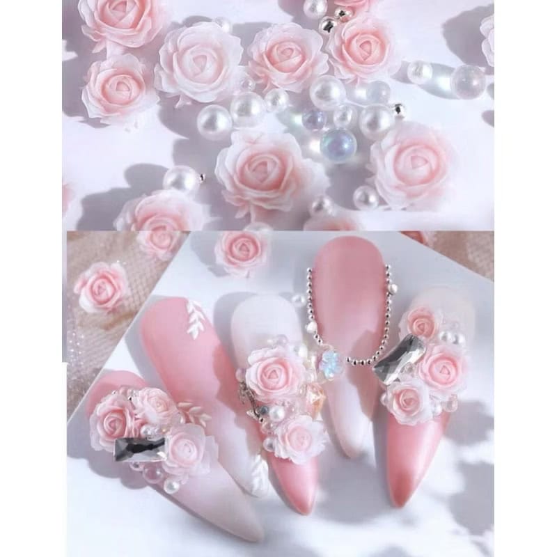 1pack Rose Floral with beads & pearls Nail Decor