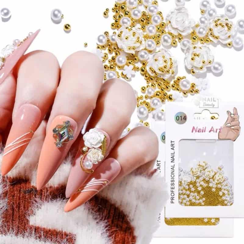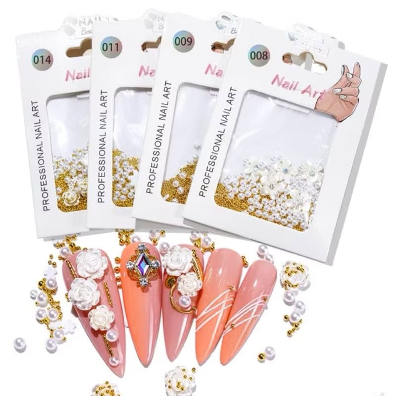 12 Grid Half or Full Pearl Beads Nail Art Decor