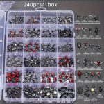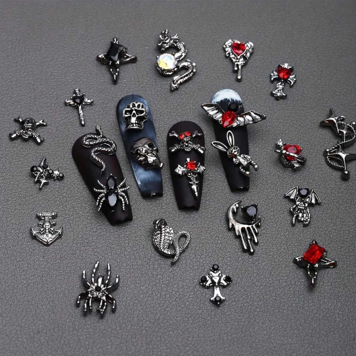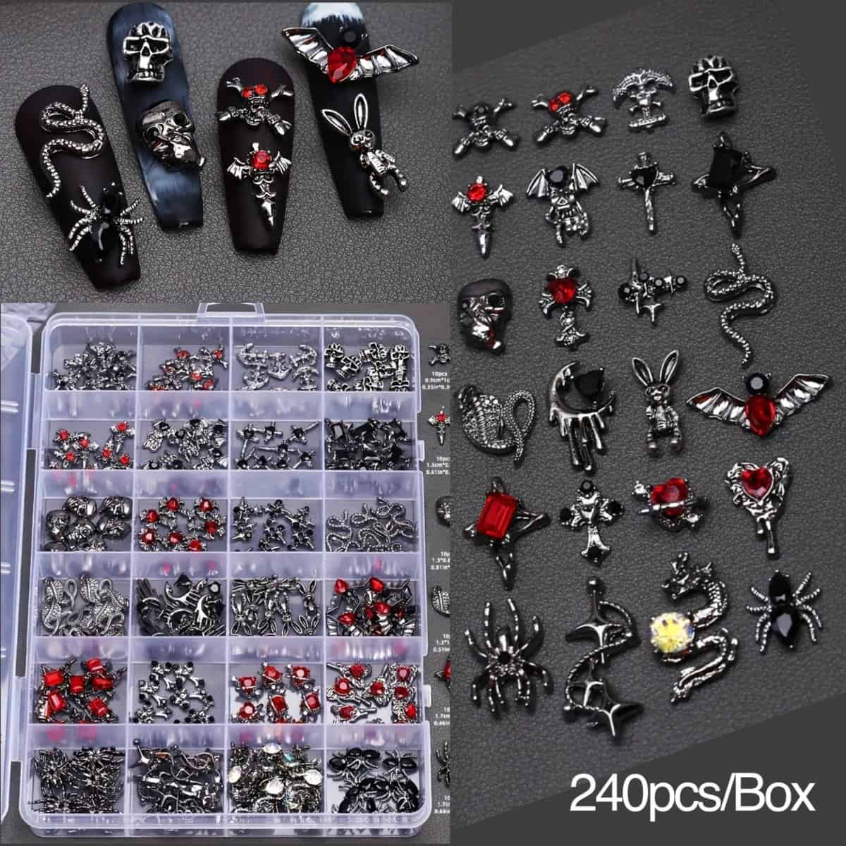 240pcs/box Punk style Halloween Cross -Armor Metal Nail Charms Heart shaped Nails Diamond