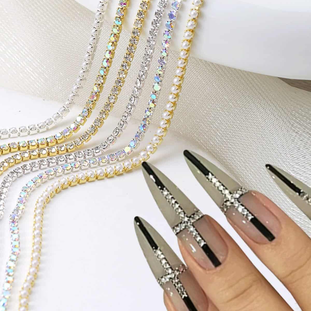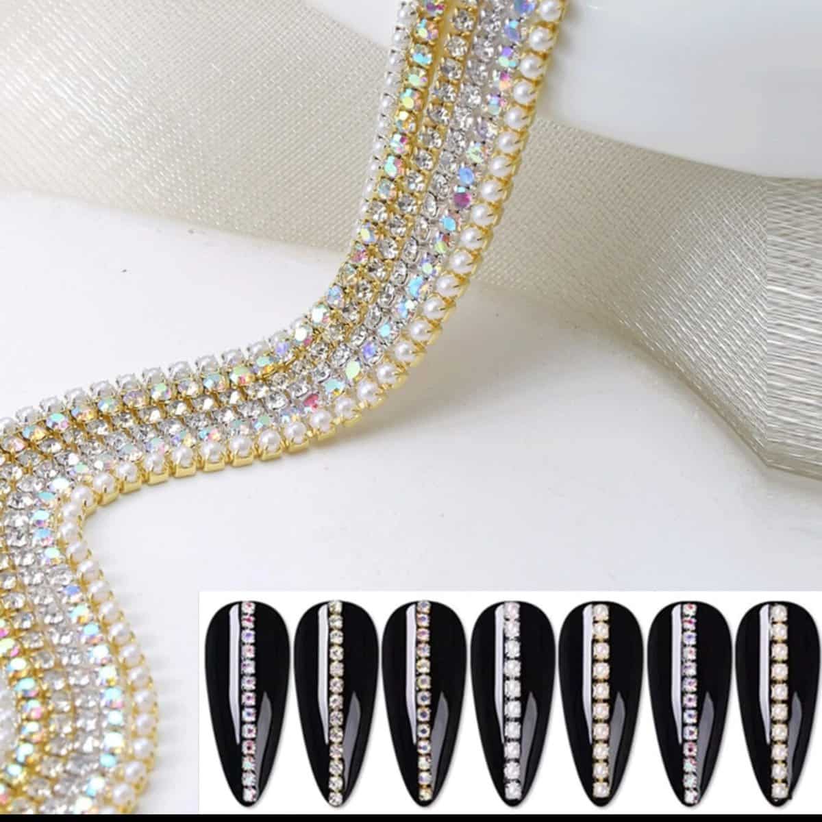 | Design | AB Rhinestone -Gold Base, AB Rhinestone -Silver Base, Rhinestone-Gold Base, Rhinestone-Silver Base, Pearl-Gold Base, Pearl -Silver Base, Pearl & RS – Gold Base, Pearl & RS – Silver Base, Gold & Silver Ball Chain, Pearl – Gold Base, Pearl – Silver Base |