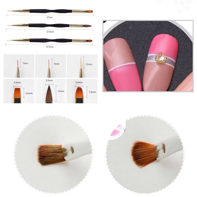 3pcs Dual Use Nail Brush Pen / Detail brush / poly gel brush