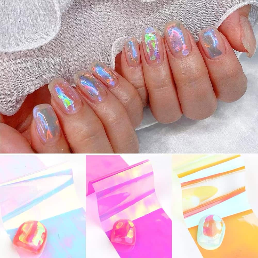 8pcs Aurora Holographic Broken Glass Foil Nail Art Decoration