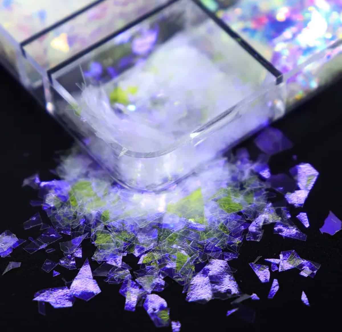 Irregular mermaid nail sequin,irregular and changeable shape, meet your needs of all kinds of nail styles. irregular nail sequins are transparent and look as cool as ice. they are very suitable for nail art in summer.