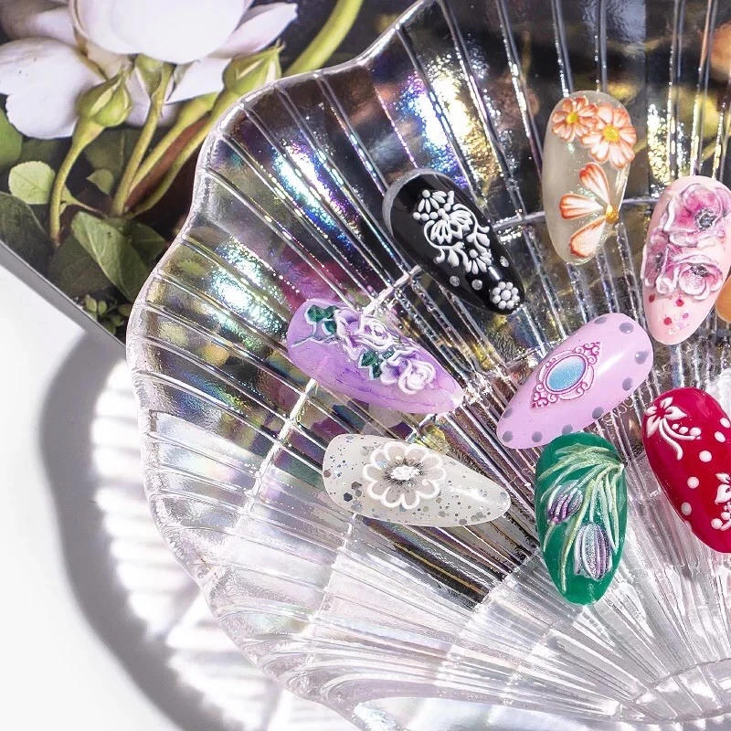 Laser Aurora Transparent Plate Glass Shell Nail Display Tools